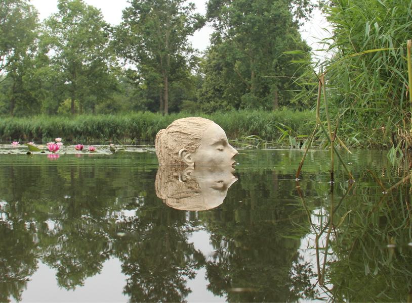 Er is lucht net boven de wisselende waterstand, als de treurwilg en de Paaseiland Moai sculpturen. Waar het troebele water haar zwangere buik verhulde is die later te zien geweest, kwetsbaar onthuld in de Bibliotheek van Almere. Want hoewel vervuld van liefde en geluk sluimerde er ineens ook verlammende angst onder de oppervlakte waaraan ze zich moest leren overgeven..
